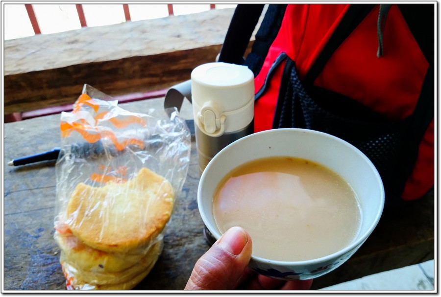 喝一碗半熱的酥油茶配從麗江買的酥餅當午餐!