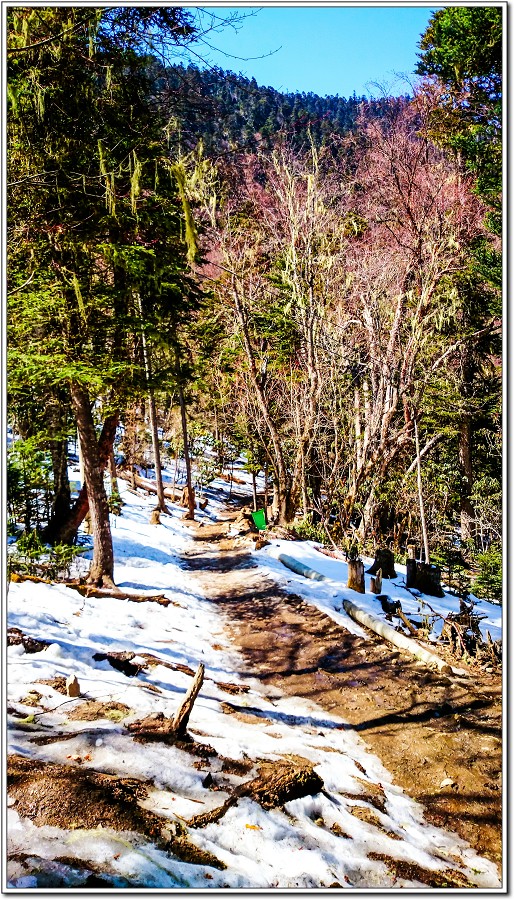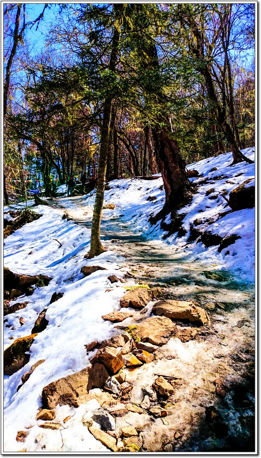 繼續往上走,積雪越來越多了,藏族姑娘吩咐老狼有帶雪爪就套上雪爪比較好行走!