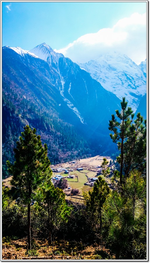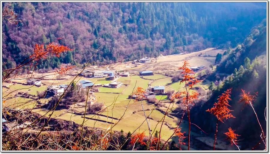 兩條狼腿上山沒力下山膝蓋痛,這段連續6公里下坡膝蓋當然又痛了,也終於看到雨崩村了!