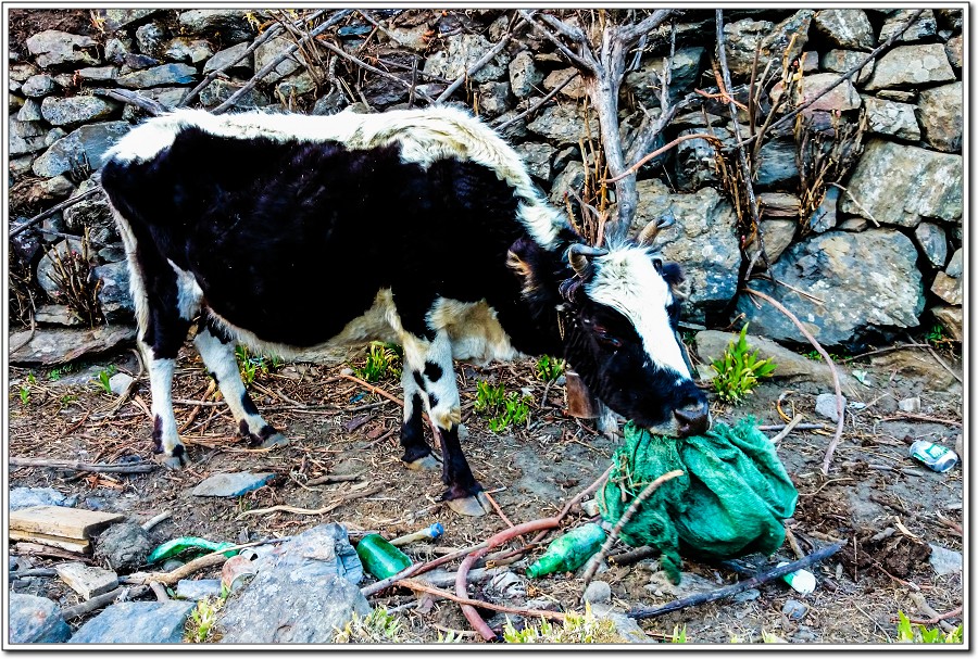 乳牛正在啃塑料袋,藏族不知道醬子會喝到『塑化劑』?