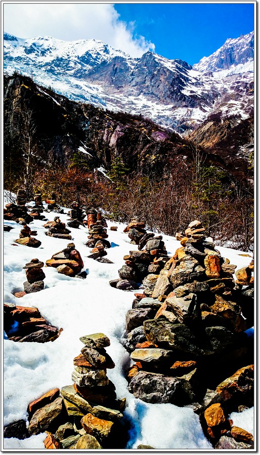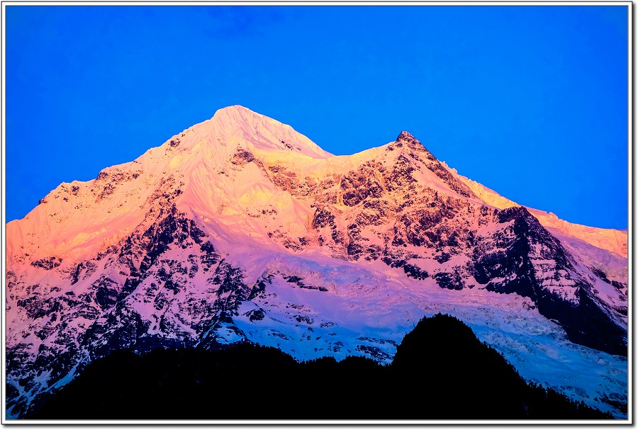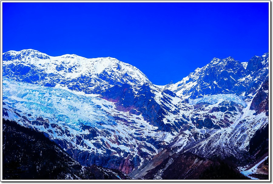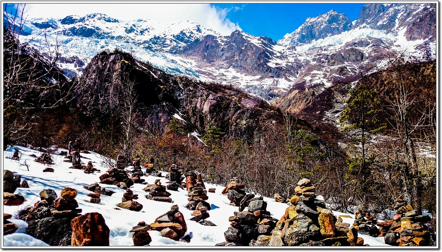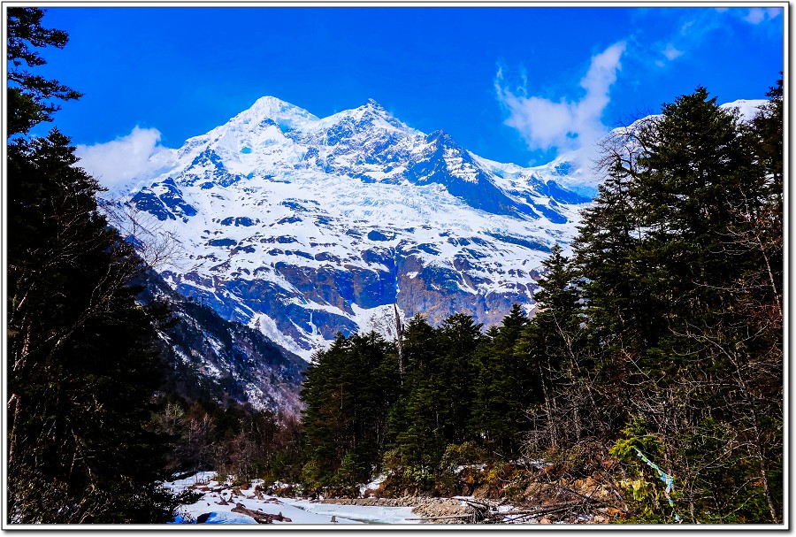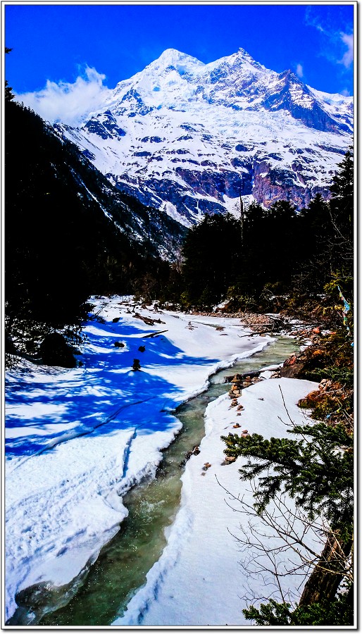 這裡離將軍峰的巨大冰川距離更近了,Kevin低聲吩咐我們說話要小聲,一來表達對聖湖的崇敬,二是避免太大的聲波引發雪崩!