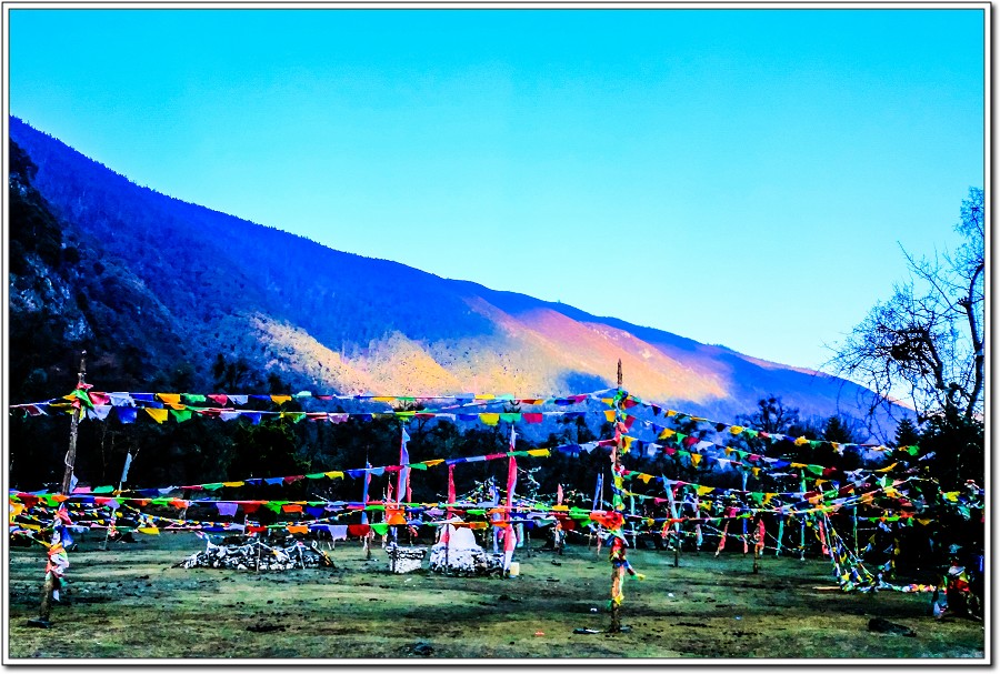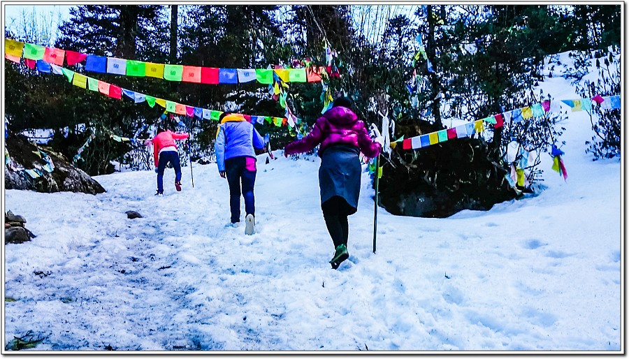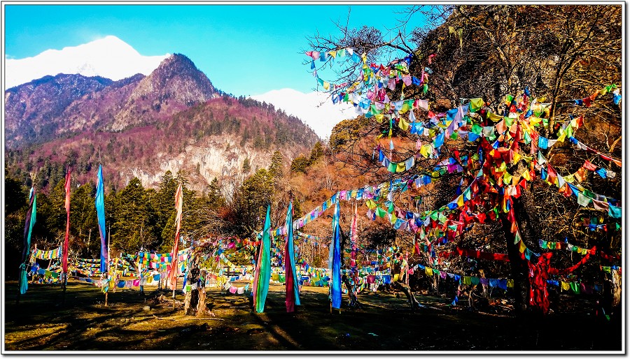 終於看到五色旗陣,表示我們快回到雨崩上村了!