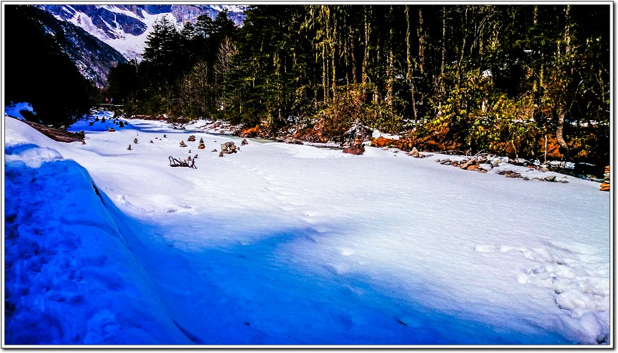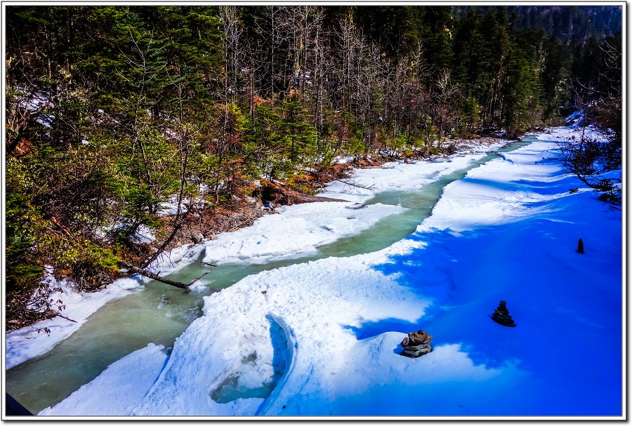 溪谷的積雪非常厚,完全看不到路徑,雖然在雪地亂踩亂走很有趣,Kevin一直提醒老狼要小心啊!