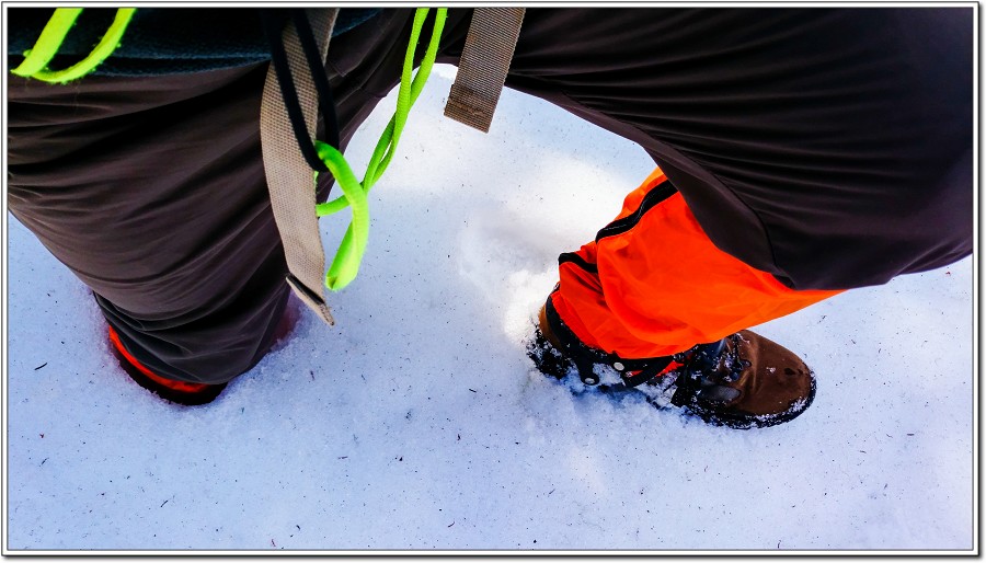 Kevin吩咐我們穿雨褲避免積雪把褲子搞濕了不酥湖,穿了6個多鐘頭裡頭全是汗水,蛋蛋都泡湯了,把雨褲脫下來風乾一下香腸滷蛋,喔,好冰啊!