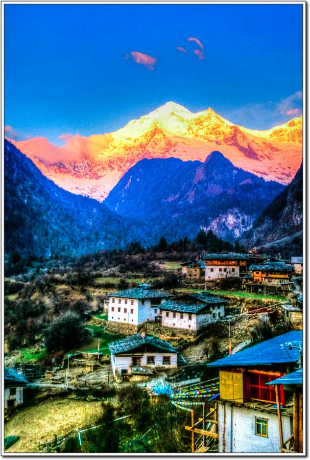 雨崩村分雨崩上村和雨崩下村,二村距離1公里,雨崩上村海拔3,150米,雨崩下村海拔3,050米,據說這短短一百米很陡峭,我們明天一大早就下切到雨崩下村,移房到下村之後搶攻神瀑。