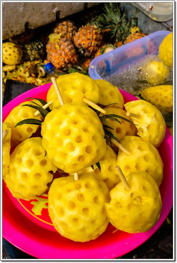 在麗江,當地人都喜歡吃這小鳳梨,我們經過忠義市場買了三顆嚐嚐,沒味道,沒酸味、沒甜味,簡直味如嚼蠟,還是台南的『關廟金鑽』卡好呷!
