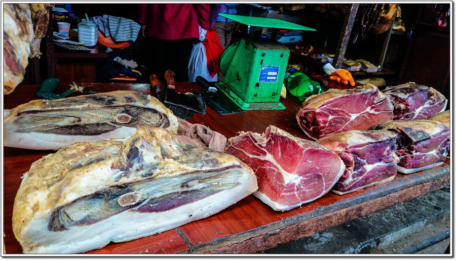 忠義市場販售的雲南火腿,讓人流口水,可惜這只賣生的,不是小吃店,無緣品嚐。