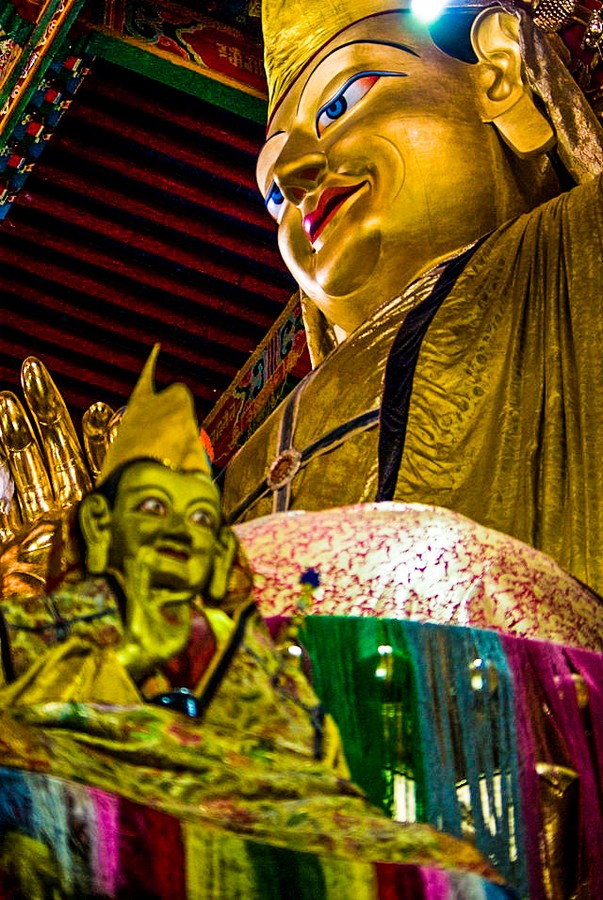老狼溜進彌勒殿裡頭空無一人,喇嘛們都忙著外頭的慶典!