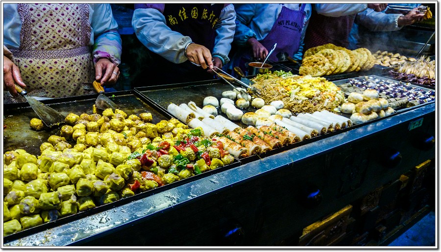 大陸人都說台灣小吃特別多、特別好吃,這個位在麗江古城四方街的美食中心美食數十種,可能擺的太多反而引不鳥遊客們貪婪的食慾!