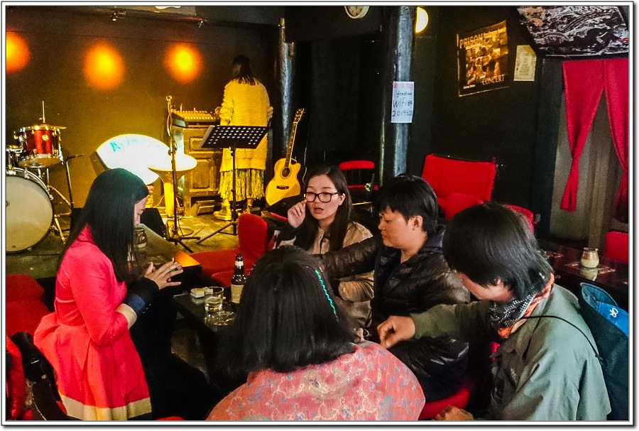 反正今天大家都沒事,晚上來到小渼上班的咖啡館喝咖啡、聽民歌。