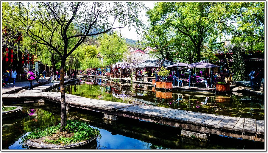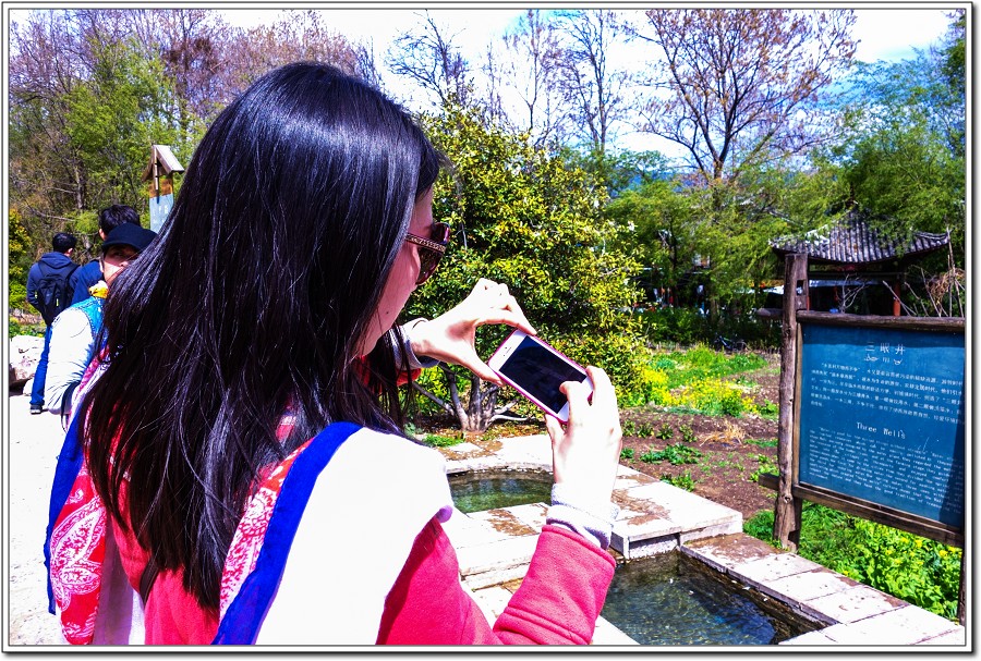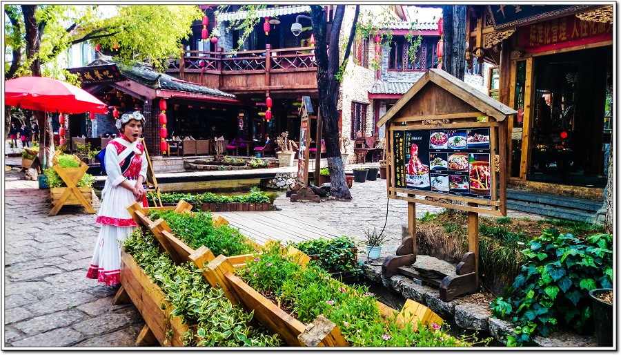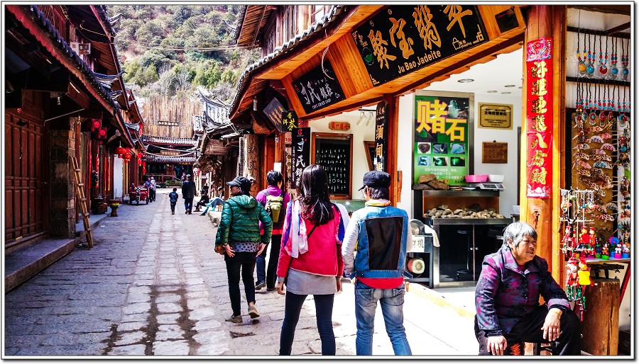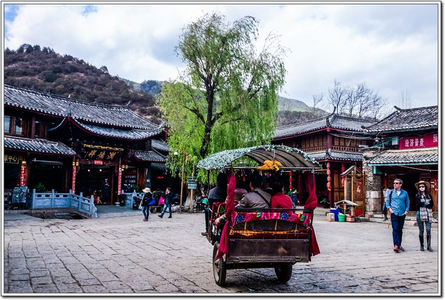 我們搭客運到束河古鎮外圍提前下車,小渼說束河古鎮跟麗江古城一樣會收管理費,麗江古城維護費80人民幣是由客棧代收,小渼帶我們走不用門票的VIP路徑,所以我們得提前下車。