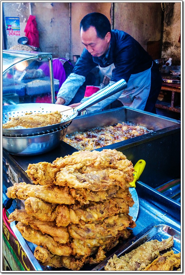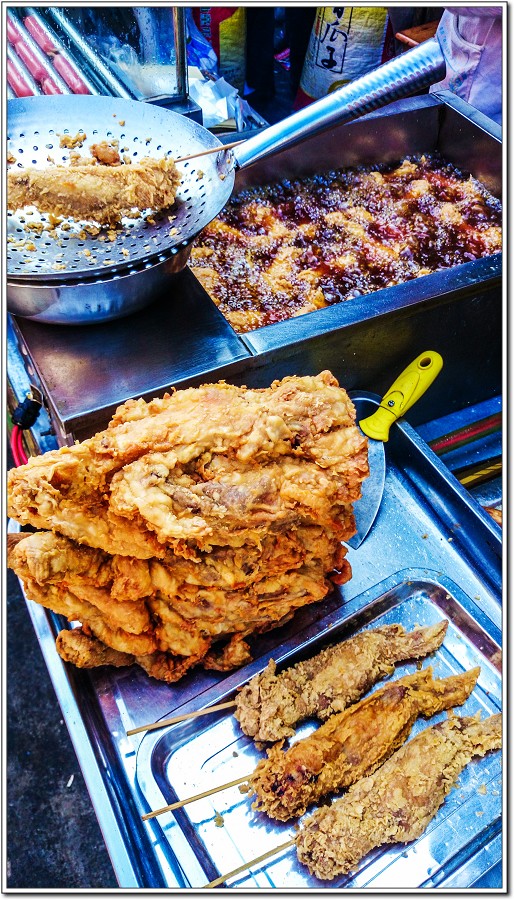 Kevin對忠義市場的興趣實在濃厚,這天他又忍不住在忠義市場入口處這家炸雞小攤買炸雞腿,他說這攤炸雞腿比昨天含狗人炸雞腿好吃,老狼倒覺得『波特曼』炸雞更好吃!