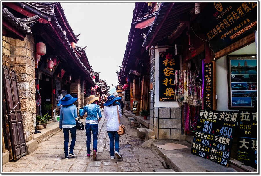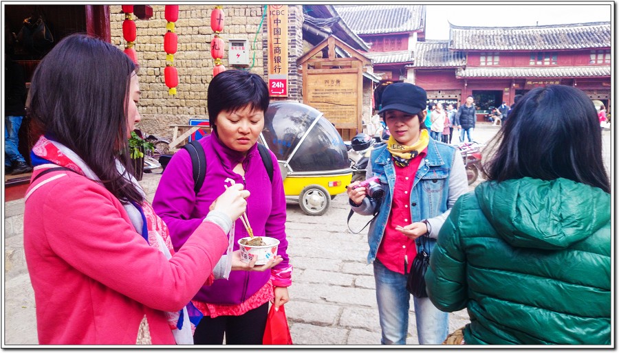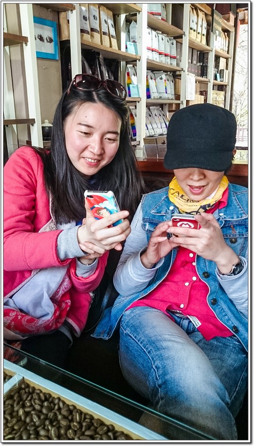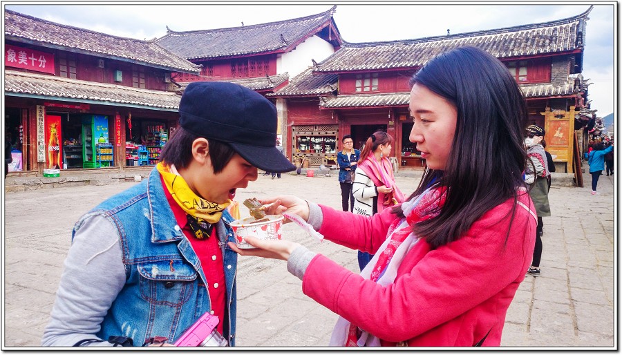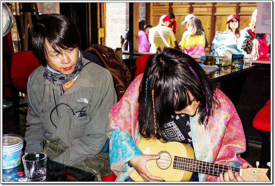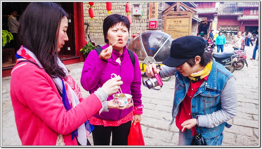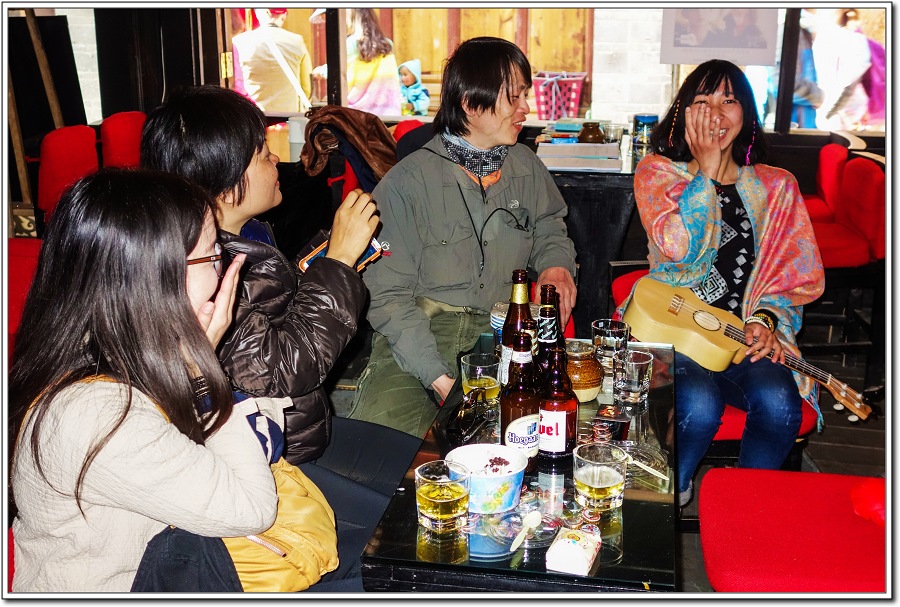 Vivian把我們在瀘沽湖認識的小渼給call出來,小渼跟Vivian一樣祖籍廣東,小渼受不鳥家人一直催促找夫家,逃家到麗江,她剛找到咖啡館的工作,還沒上班就跟老闆請假跑去瀘沽湖,真巧讓我們相遇,這傢伙跟Vivian一見面就是一串通不懂的廣東話。