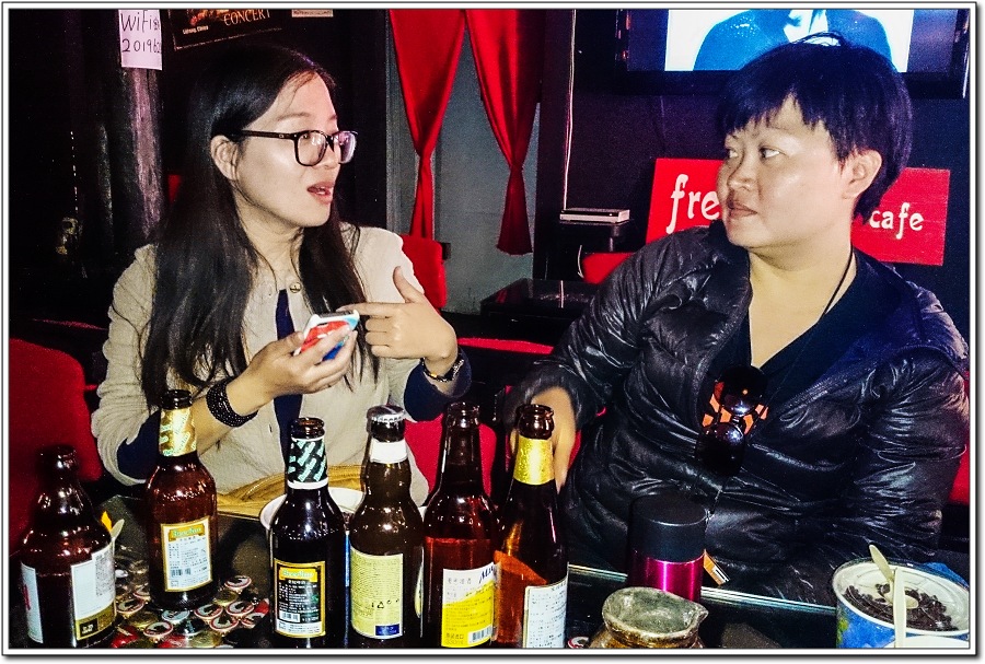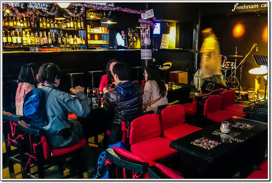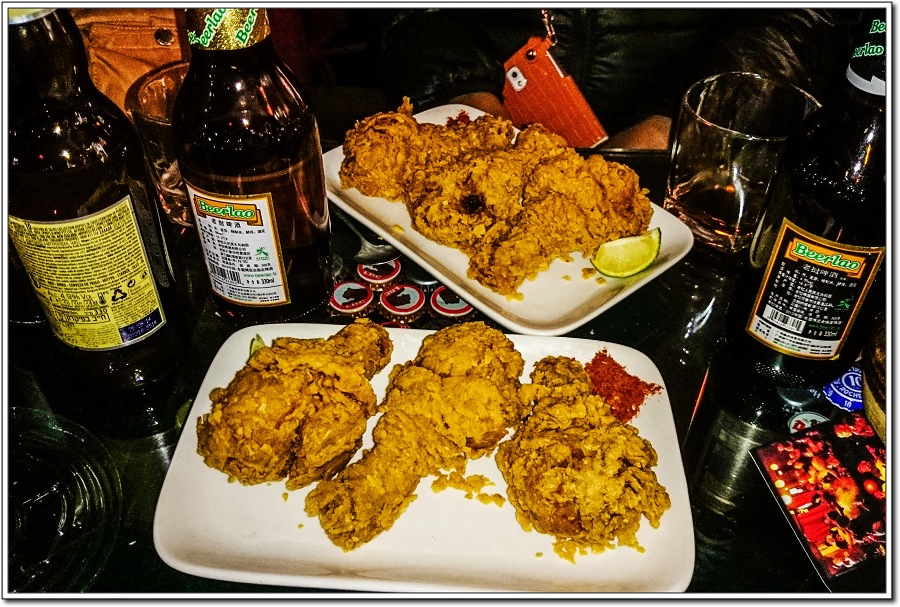 Kevin也要帶他的新女友過來湊熱鬧,於是我們每人各點一款不同的啤酒,只是酒吧還沒營業,雖然韓國老闆堅持時間沒到他不下廚炸雞腿,反正我們有的是時間,後來是櫃臺美咩私下跟我們透露老闆今天難得提早下廚幫我們炸雞腿。