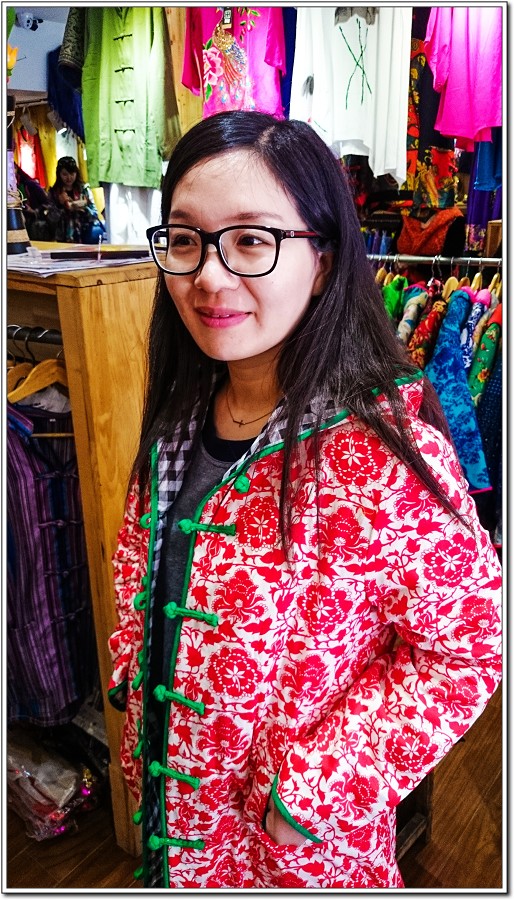 小渼沒落後Vivian,也敗了一件棉襖,麗江冬天很冷啊!