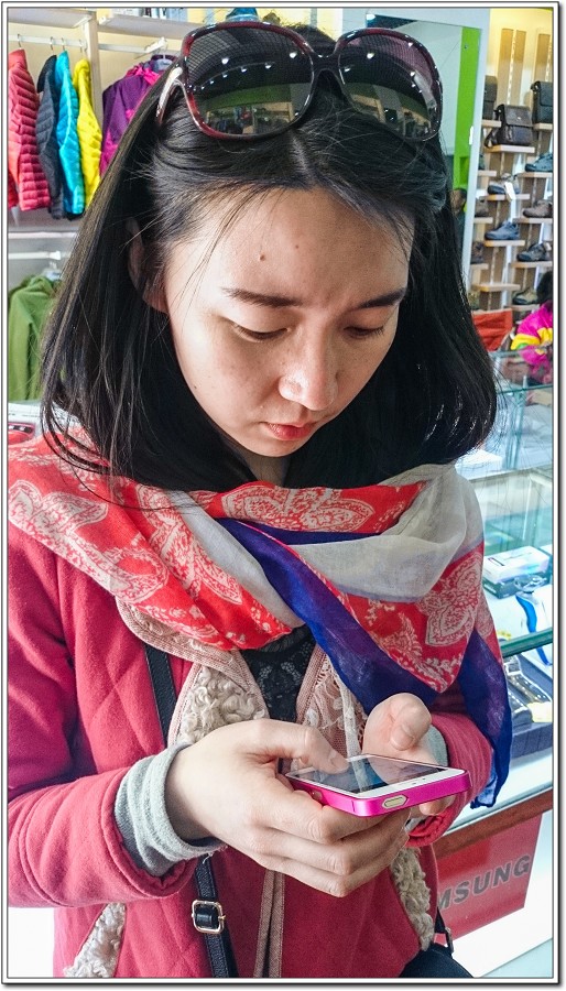 Vivian發覺老狼在麗江買的魔術頭巾好看又好用也想買一條,老狼忘了買到那家魔術頭巾的登山用品店在哪裡,為了帶她找魔術頭巾,Kevin帶我們幾乎把麗江古城翻了二遍就是找不到。我們退到古城外圍找找,在一家大陸品牌戶外運品店終於找到Vivian想要的魔術頭巾。
