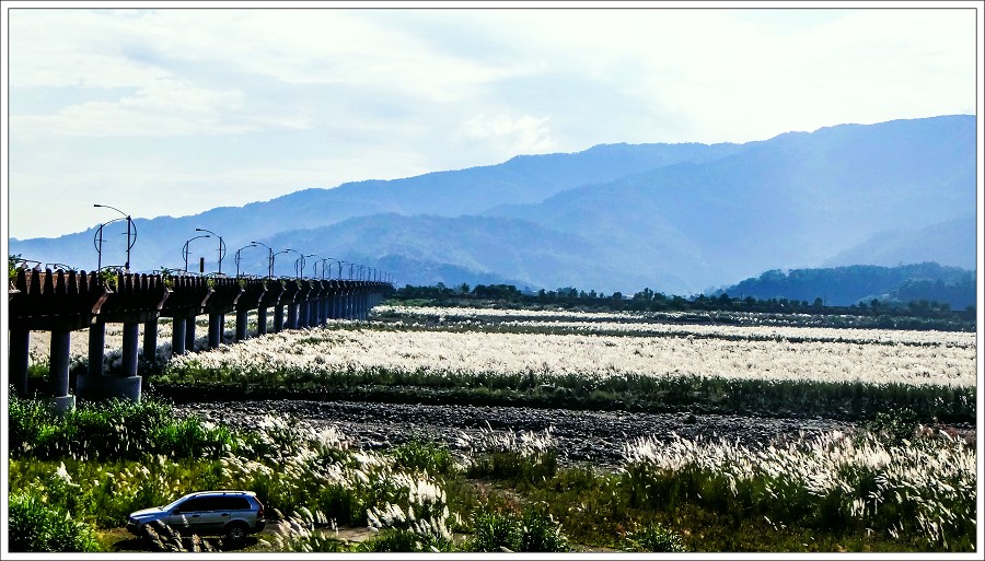 2011年有名的30倍『砲王』~Sony Cyber-shot DSC-HX100V傻瓜相機,焦段27 mm至810 mm F2.8 - 5.6,在泰雅大橋上用810 mm望遠端打橋下遠端的芒花,看起來漂釀捏,早知道多打幾張!