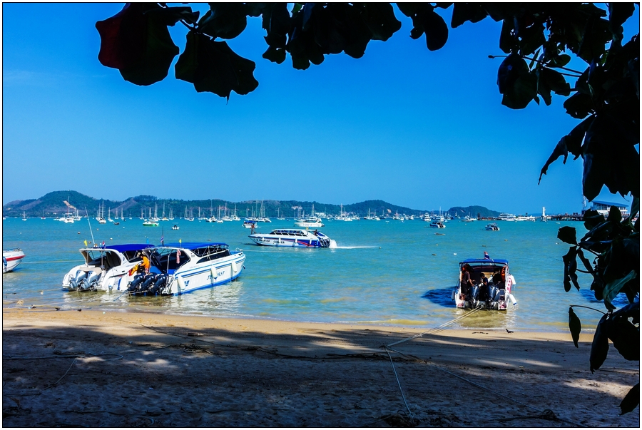 老狼出遊沒做功課,所以只知道普吉島能參加最知名的攀牙灣、PP島、喀比島而已,黑龍江美咩小夕推薦我們先參加大陸網站人氣最旺的皇帝島,小夕用手機上淘寶網查價格,我們在巴東主要大街Thanon Ratuthit Songroipi Rd翻找販售各種旅遊行程的旅遊代售店,詢價N家不讓小夕滿意價格,太陽很曬,老狼有點上火,最後小夕終於在一個路邊攤跟阿桑達成交易,阿桑私下說同一個景點會有好幾個旅行社承辦tour,旅行社找的船公司也不盡相同,總歸內容和品質都一樣,選便宜的旅行社推出的tour就對了,至於淘寶網還有更低價格,阿桑說網路推的價格可能會低一些,她也是代售,但真的沒辦法給我們那麼低價,但是可以跟其他家代售點比價,她總要生意利潤啊。