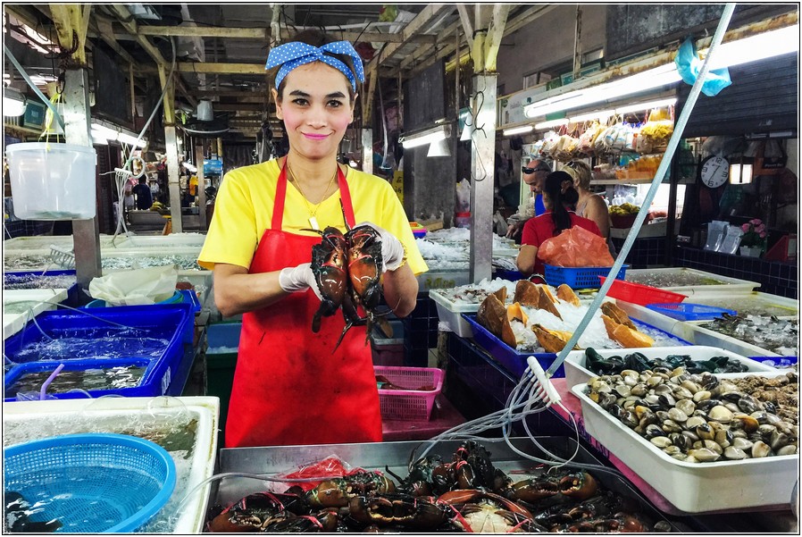 她們在AGODA買到優惠,一晚泰銖5千多買一送一,取消預訂將被取消一晚優惠所以她們捨不得退訂。她們離開芭東的這一天揪兩匹狼去Banzaan Fresh Market吃龍蝦!