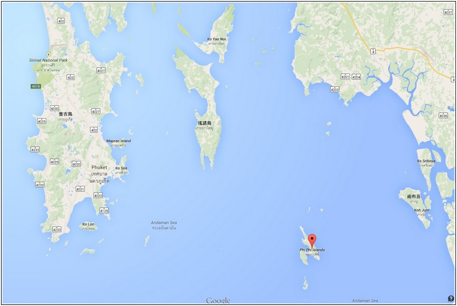 Google map看小PP島Maya Bay是簡單的實際上航道頗為曲折,快艇宛如在狹窄的下龍灣奔馳!