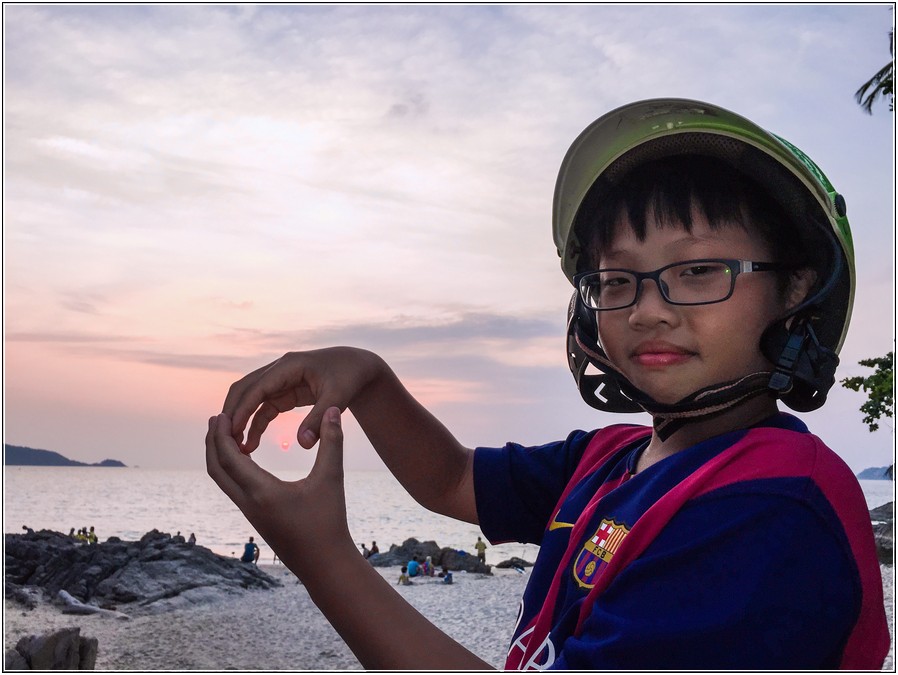 回到巴東飯店也差不多是吃晚餐時間,沒讓小狼回房間玩ipad,直接往巴東北邊海岸衝,前天去幻多奇樂園經過很多生意很好的景觀餐廳,沒想到小狼根本沒興趣!