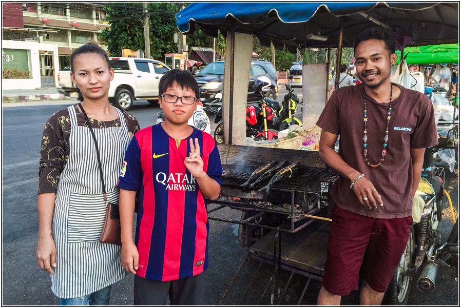 烤魚的攤子還沒搞好先買別的吃點不一樣的,這時有個泰國咩:「嘿,我認識你們,你們住在Inn Patong!」