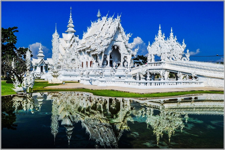 不同於泰國傳統的寺廟,該寺以素白做底,銀鏡鑲邊,反射出奪目的光芒,象徵著佛陀的純潔和佛的智慧照耀著全宇宙,有一種超現實感覺。