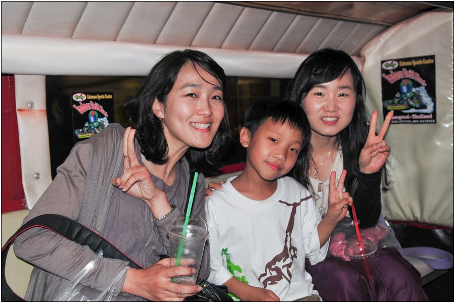 搭『雙條』回清邁市區與二位韓國美咩同車,韓咩當然是被老狼逗樂了,把機會讓給小狼跟漂亮姊姊合照,結束今天Fly of Gibbon+帝王餐的Happy day,明天帶小狼參觀清邁動物園,比木柵動物園好玩喔!
