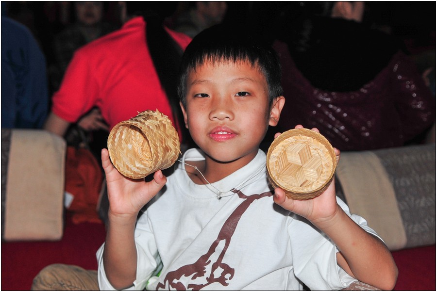 果然糯米飯是小狼的最愛,三兩下就把糯米飯吃光光,他說要把盛裝糯米飯的編竹簍帶回家做紀念。