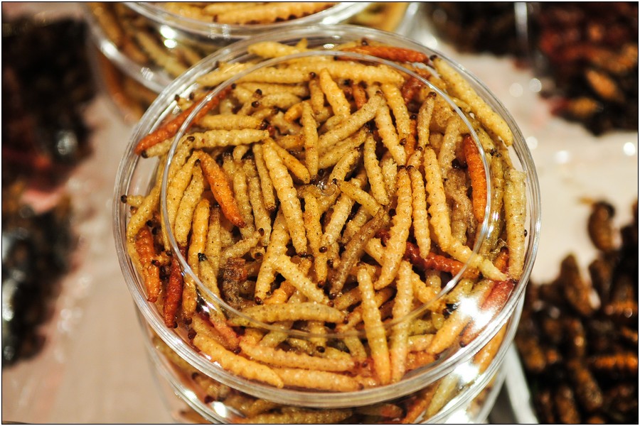 泰國著名的『蟲蟲大餐』,既然老闆爽快讓老狼免費拍照,爽快各買一樣嚐看看!