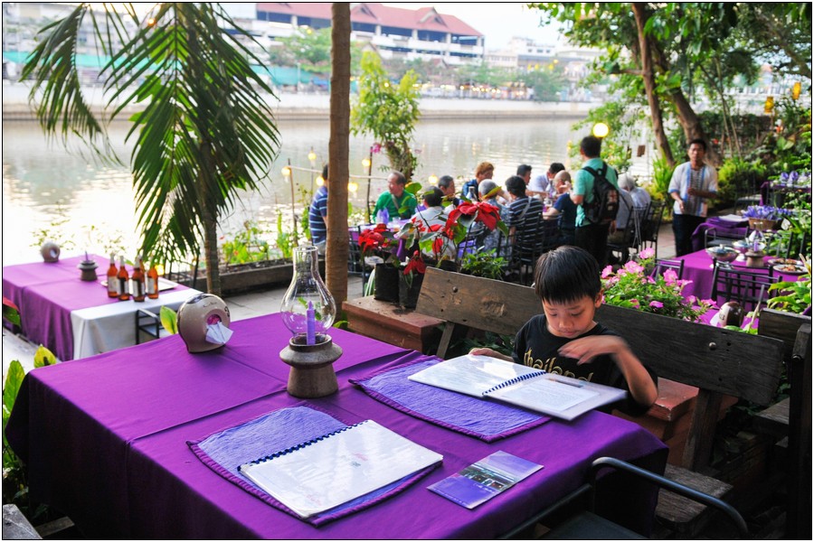 兩匹狼沒事先訂位貿然前來,還好餐廳沒客滿。隨著服務生穿過中堂,來到Ping River的戶外用餐區。