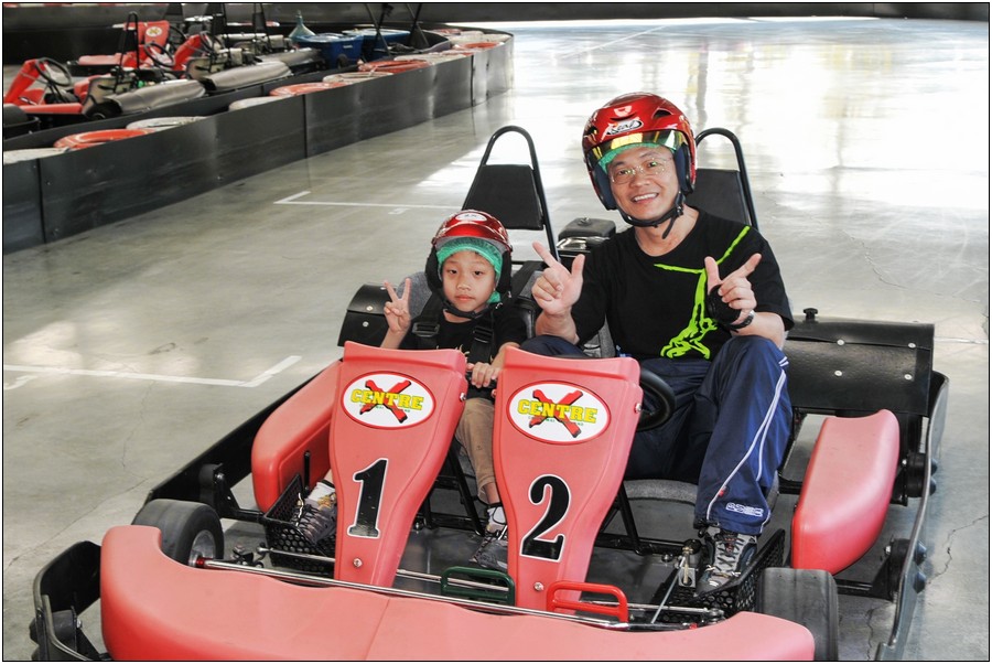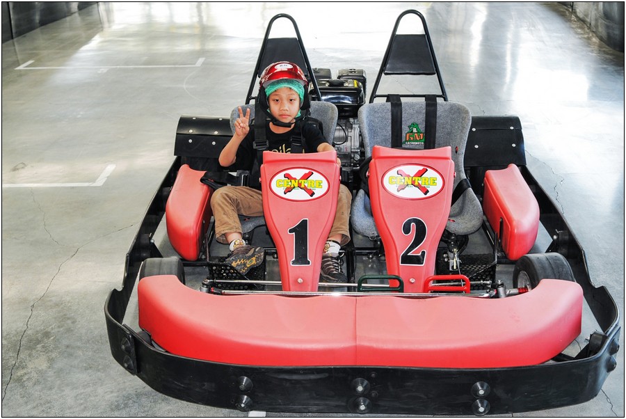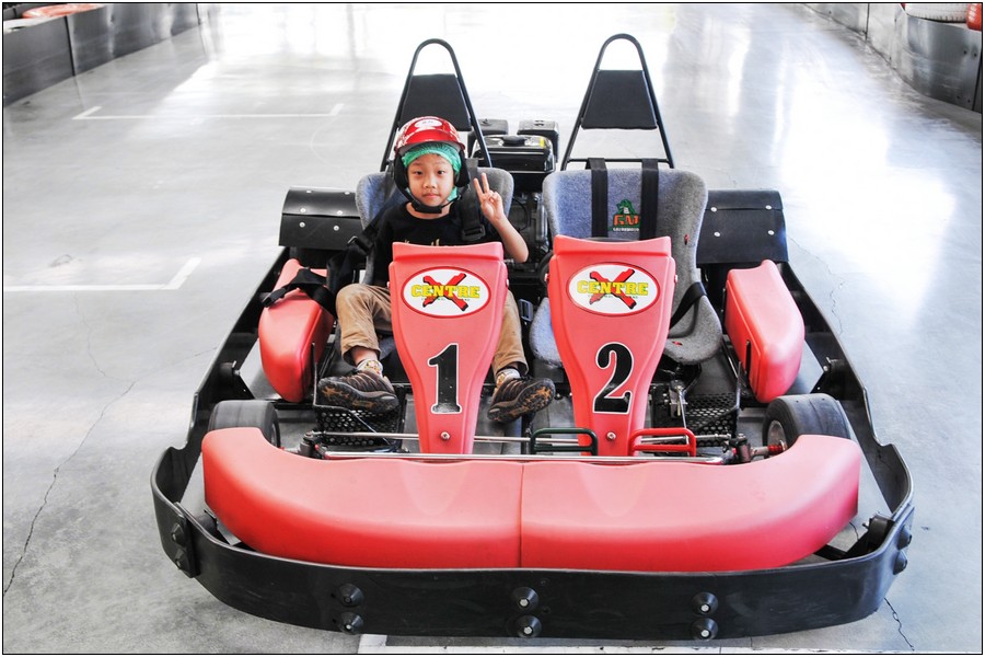 一場15分鐘的Go-Kart時間僅有15分鐘很快的就結束,問小狼還要不要加碼再玩一場,小狼搖搖頭:「小孩子不能自己開車,不想玩!」