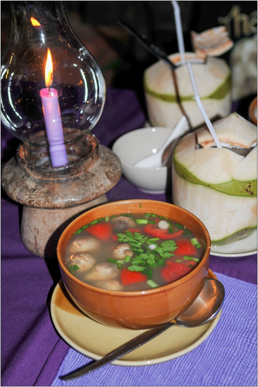Tom Yum冬蔭,也稱為泰式酸辣湯,港澳人士多稱為冬蔭功,是一道著名的泰國酸辣湯,由南薑、酸子、香茅、青蔥、酸檸檬、辣椒和魚露調製而成。 當中最著名的是加蝦和草菇、以魚露調味並形成乳狀質感的冬蔭功。另外有雞肉湯、海鮮湯等。(維基)