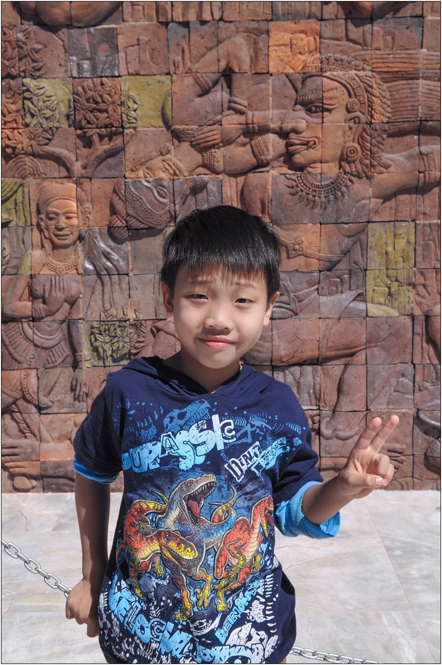 小狼有智慧,能主動幫老狼和泰國咩合照!