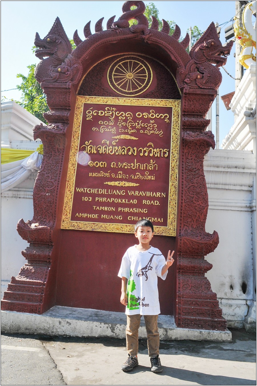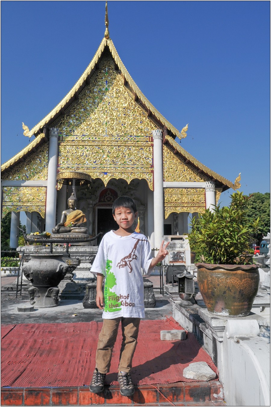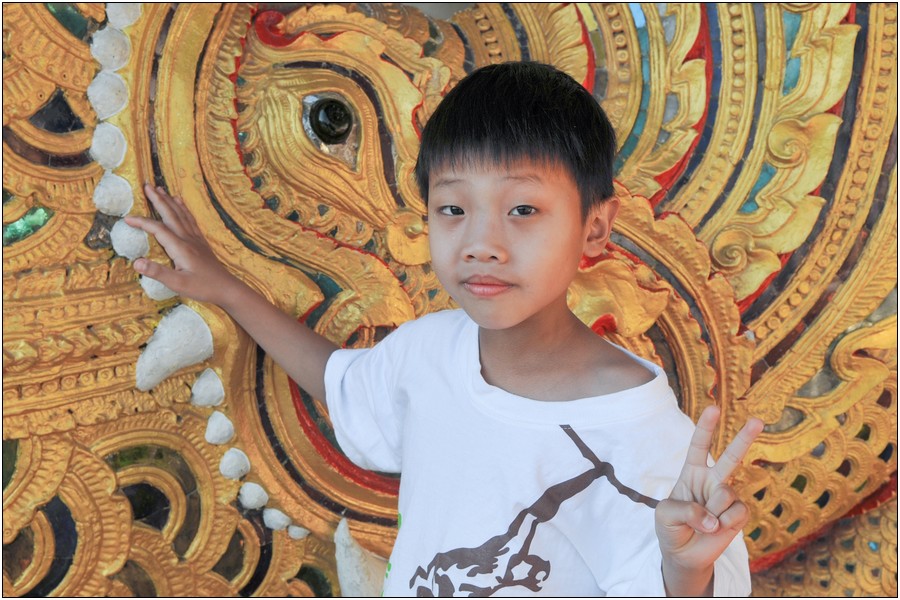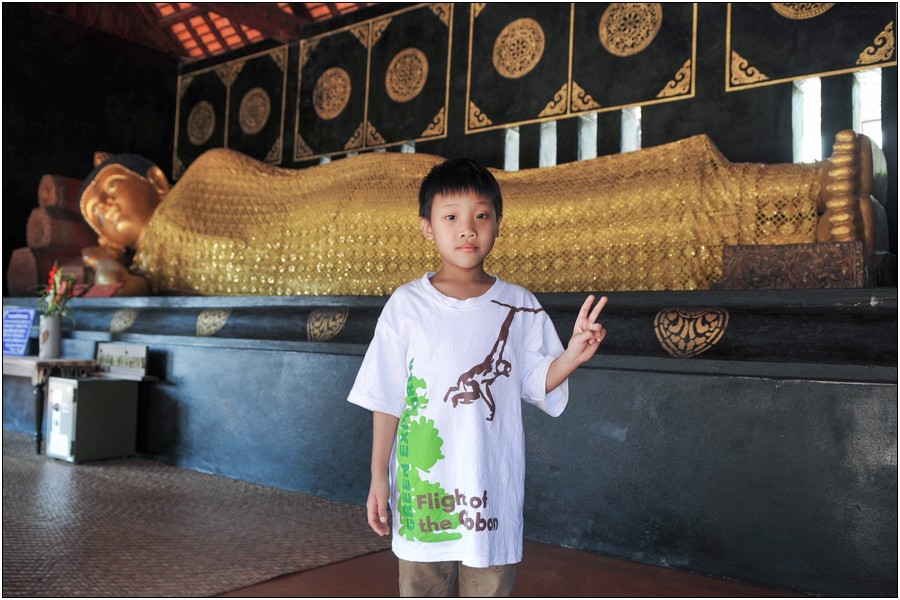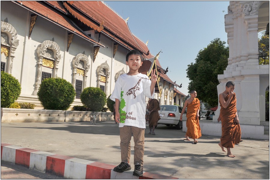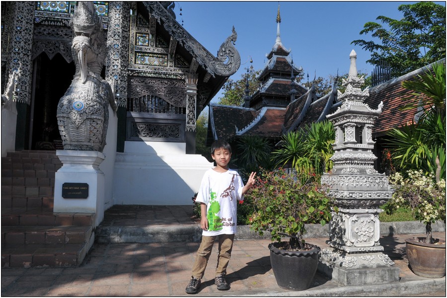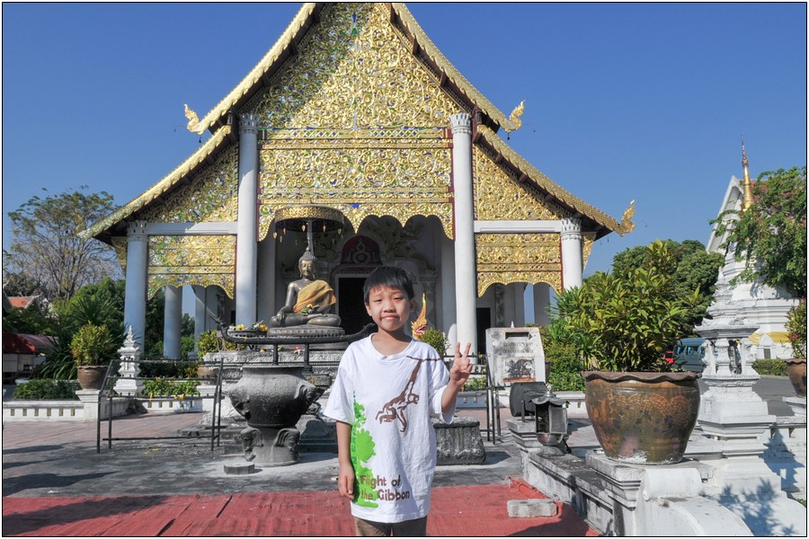 清邁行參觀數座寺廟,老狼原本只有一個感想→送Eric去普台住校半年以來到底學會了什麼不清楚,起碼知道他學會了禮佛,逢廟必拜,今天Eric又秀出在普台新的所學~打拳!