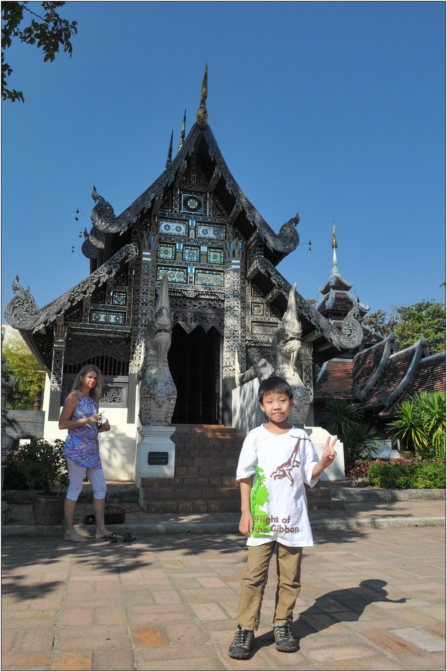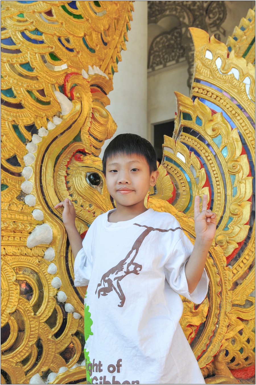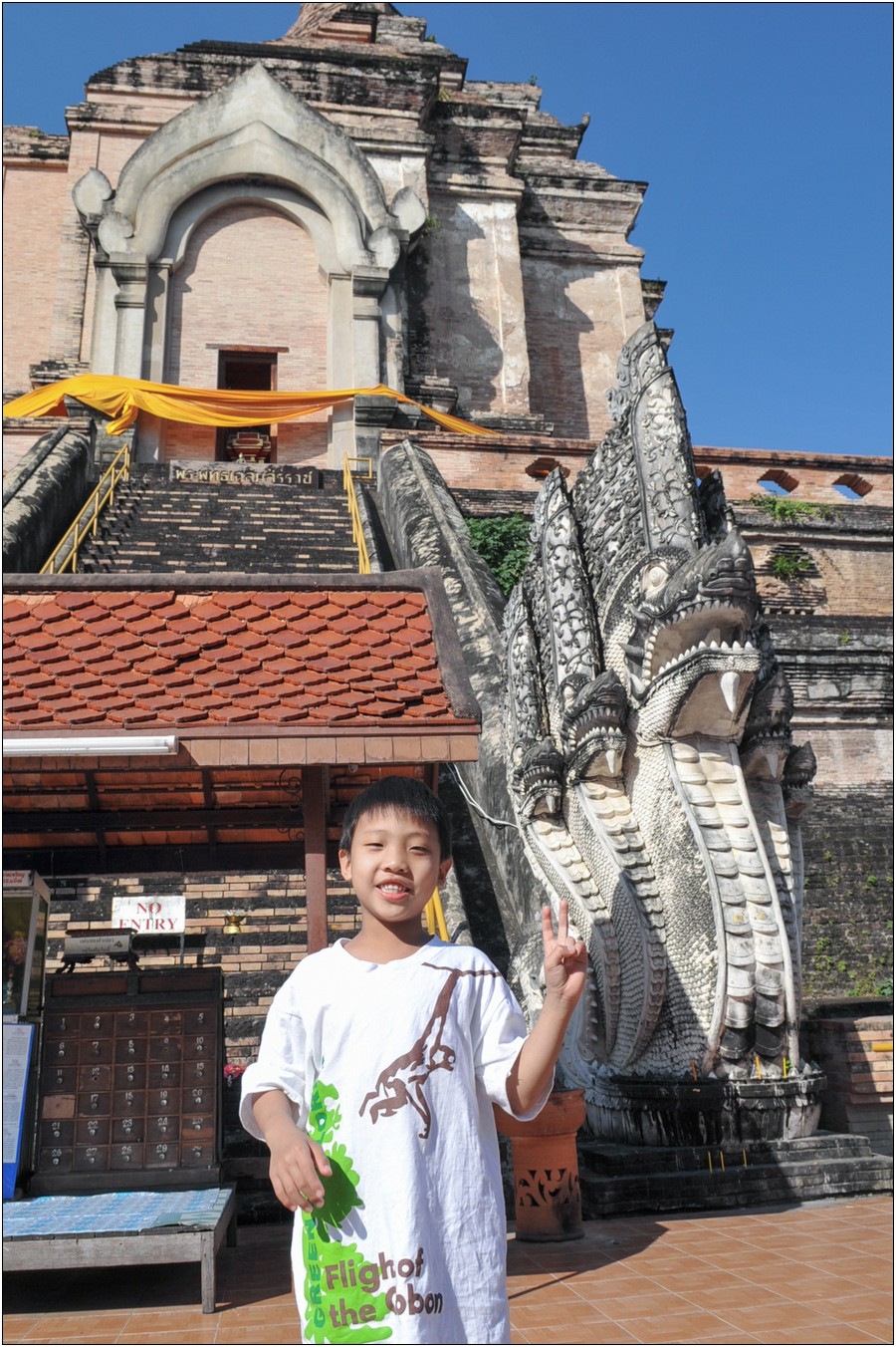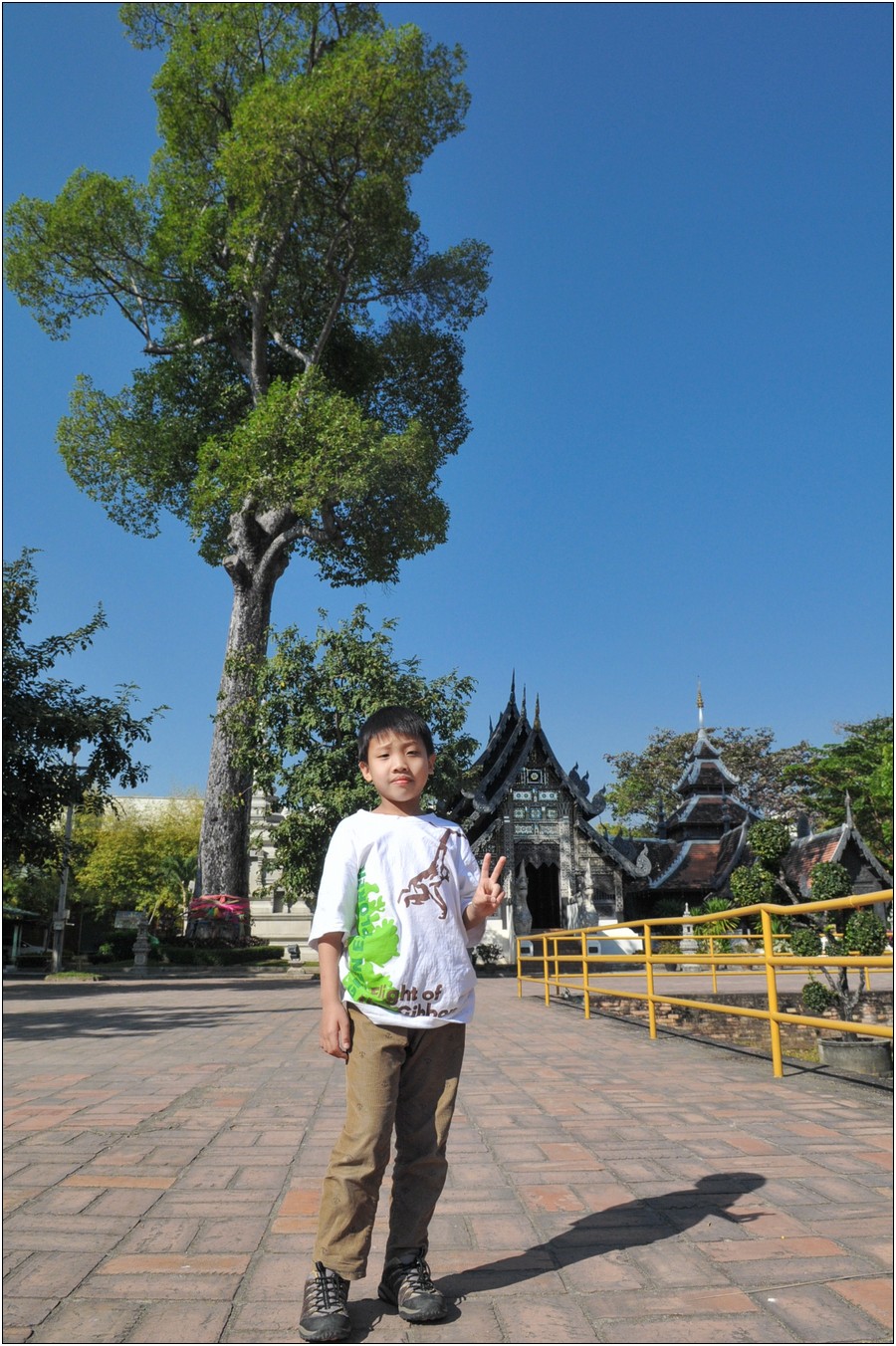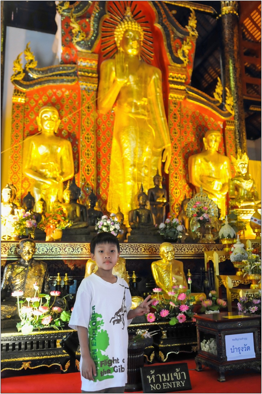 清邁行參觀數座寺廟,老狼原本只有一個感想→送Eric去普台住校半年以來到底學會了什麼不清楚,起碼知道他學會了禮佛,逢廟必拜,今天Eric又秀出在普台新的所學~打拳!