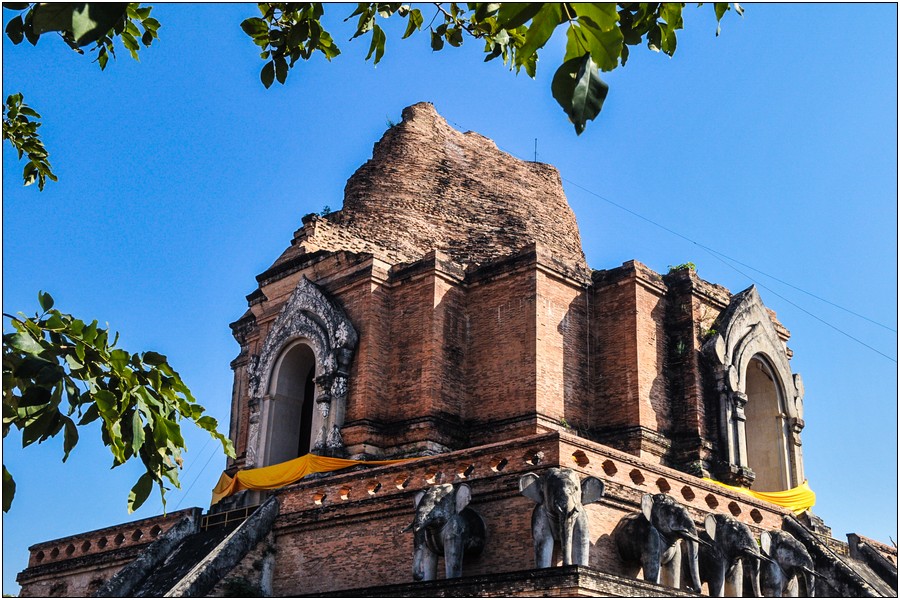 14世紀,蘭那國王Saen Mung Ma盛芒麻建造Wat Chedi Luang安葬他父親的骨灰,盛芒麻國王來不及完成就駕崩西歸,接著是一連串結構穩定性出包,一直到15世紀中葉全部完工。就在這時82米高為,底部直徑54米,是當時所有的最大的建築物。