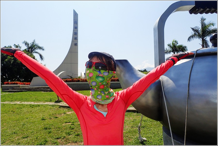 經過『掃叭石柱』岔路口小紅帽飆太快來不及把她叫回頭,往南騎沒多久就來到捷安特環島團沒有停下來拍照的北回歸線地標公園,把小紅帽攔下來進去公園拍照。