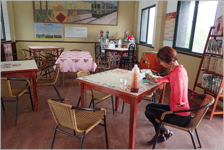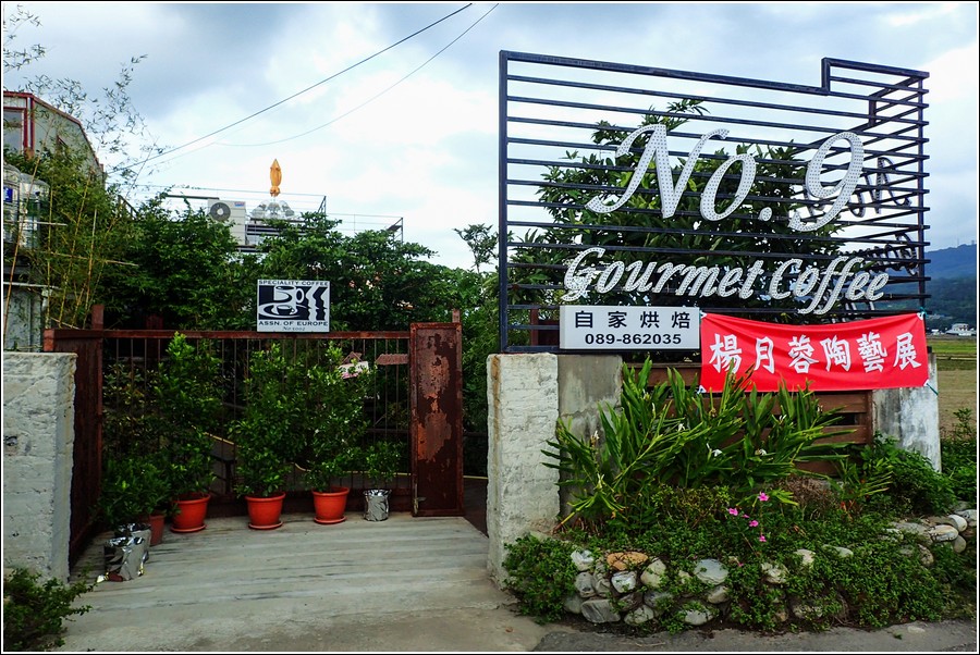 進入池上街上剛好經過網路推薦的『九號咖啡館』,請小紅帽進去休息、喝咖啡!