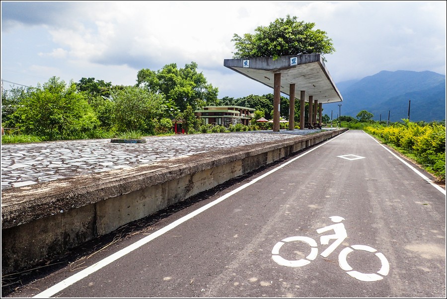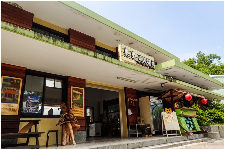 廢止的東里火車站已改為鐵馬驛站,捷安特環島團選擇在這裡休憩。