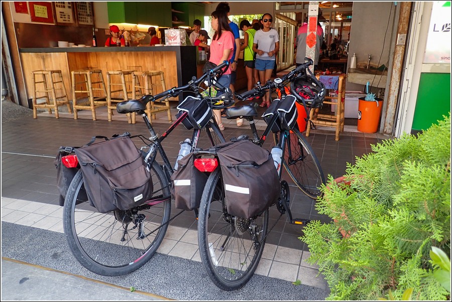 阿勝單車跟捷安特環島單車都提供上管馬鞍袋,老狼覺得不是好不好看,是非常實用,尤其下雨天或騎過積水的道路時前輪捲上來的髒水會讓馬鞍袋擋住,老狼回去之後一定也要安裝馬鞍袋。
