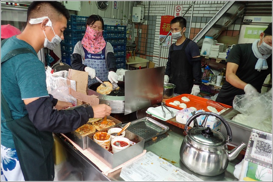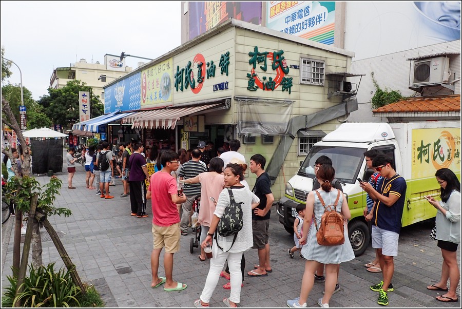 小紅帽提議吃『柯氏蔥油餅』、『礁溪包子』。包子今天休息,蔥油餅每天都大排長龍,慢慢排總會排到。