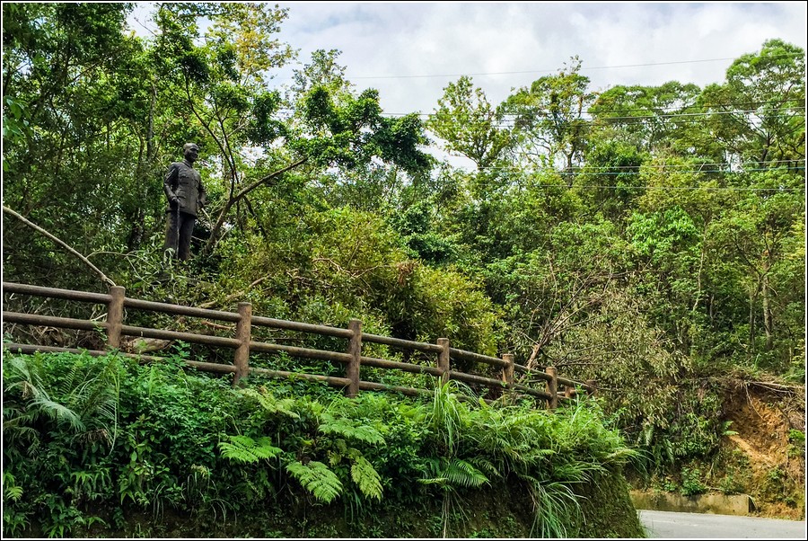 一處髮夾彎,郭杯看到一尊還沒移走的蔣介石銅像,有點驚狼!