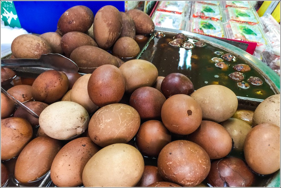 郭杯說阿婆鐵蛋要買破蛋,破蛋比較便宜而且風味更棒,只有早上才有,很快就被內行人買光!