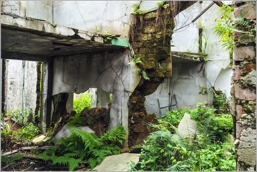 崁腳國小周遭一排民宅已經荒蕪多年,農村富裕後人口逐漸移往都市,屋舍久無人居就繼續殘敗破漏,可惜啊!