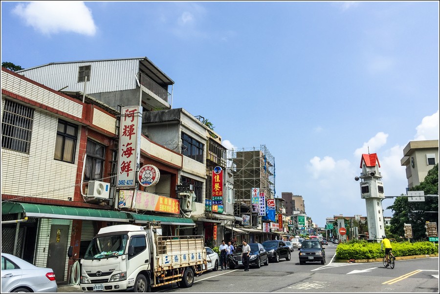 從北28縣道接萬崁公路路面變寬了,經中福路接台2線,路口的『阿輝鴨肉海產』是值得推薦的美味海產店,招牌菜~三杯石狗公、紅糟鰻!