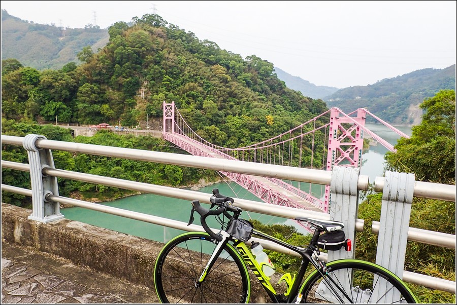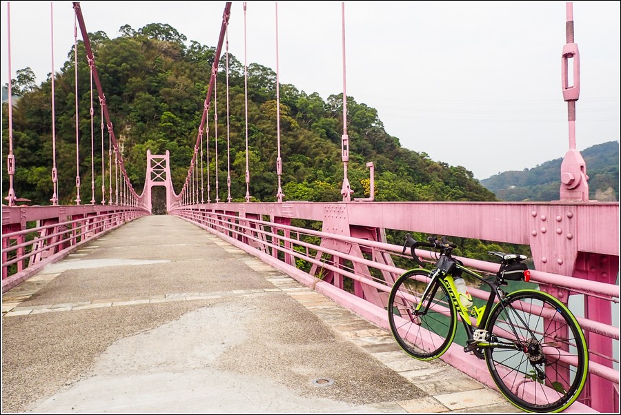 繞進復興橋休憩區,這座粉紅色吊橋是北橫舊橋。