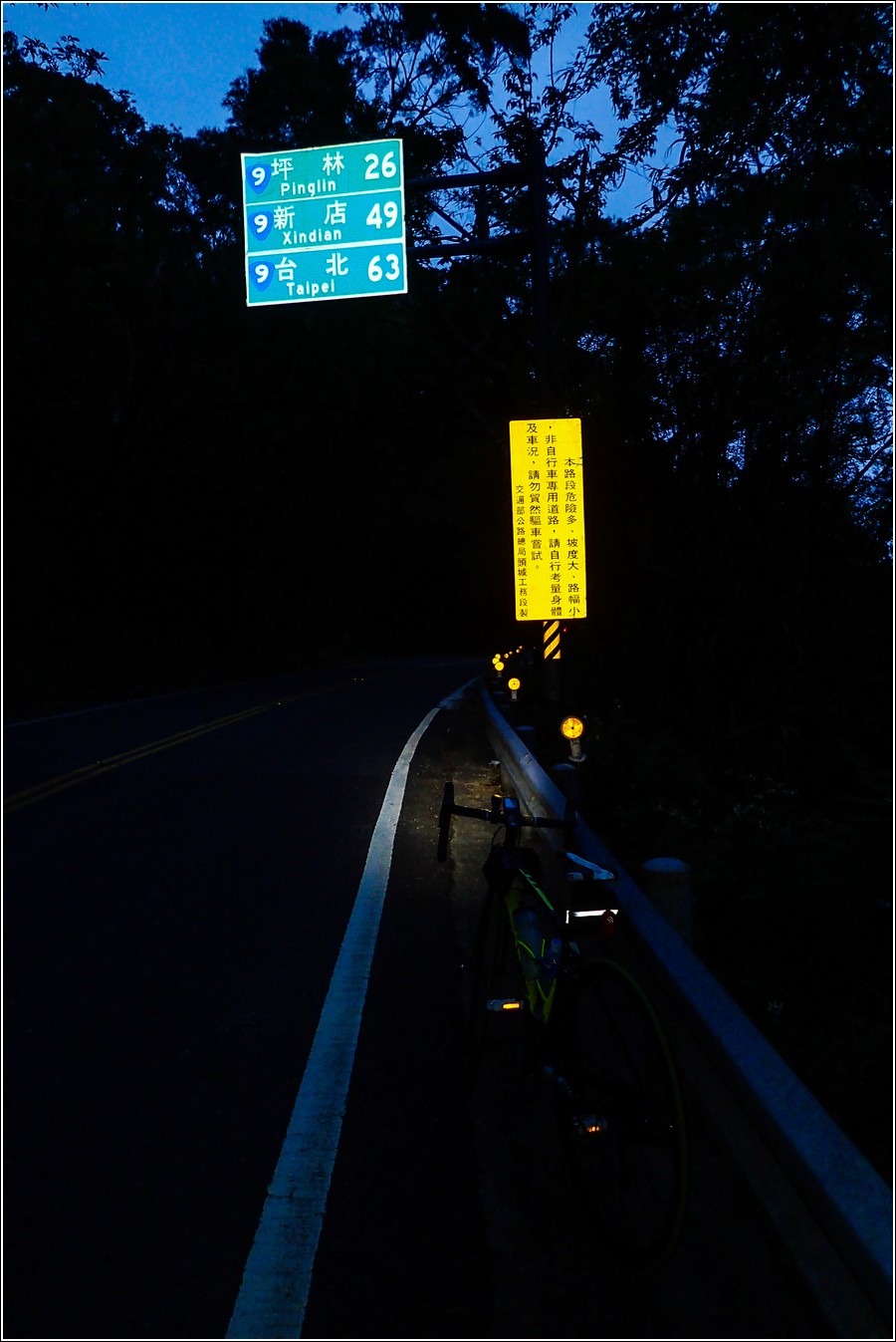 在坪林小七吃完晚餐繼續最後一段路程,這段30K山路是老狼最常練騎的路段,忘了帶頭燈摸黑騎過幾回,今天有車燈所以除了快承受不鳥的腰、坐骨雙痛之外是沒問題的。