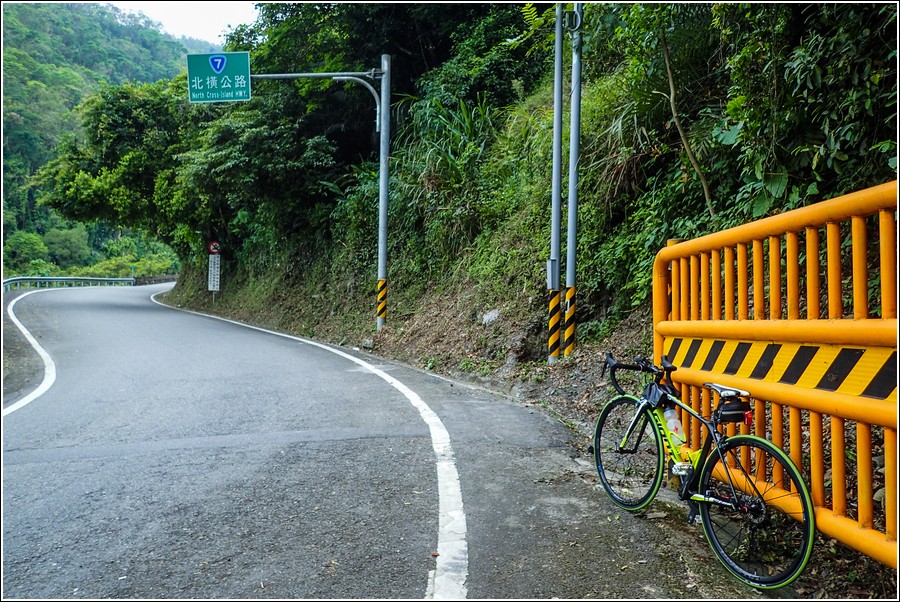 離開北橫百韜橋後繼續沿台7線往宜蘭方向踩踩踩,腳力OK,坐骨痛、腰痛令狼苦惱,下車拍照是為了舒緩雙痛!