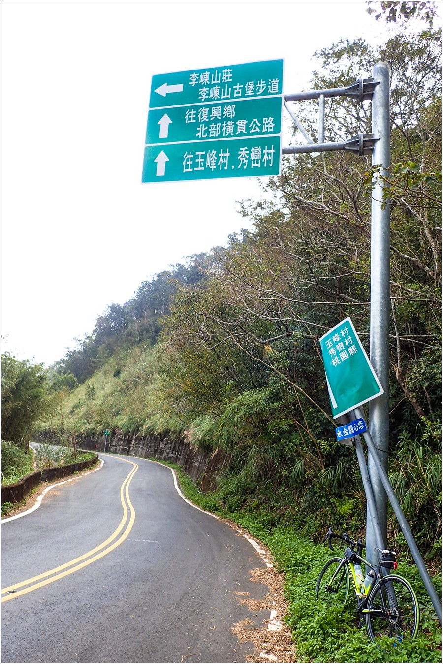 左邊綠色指標往玉峰村、北橫、巴陵,從宇老下溜變態坡時真的沒注意到。